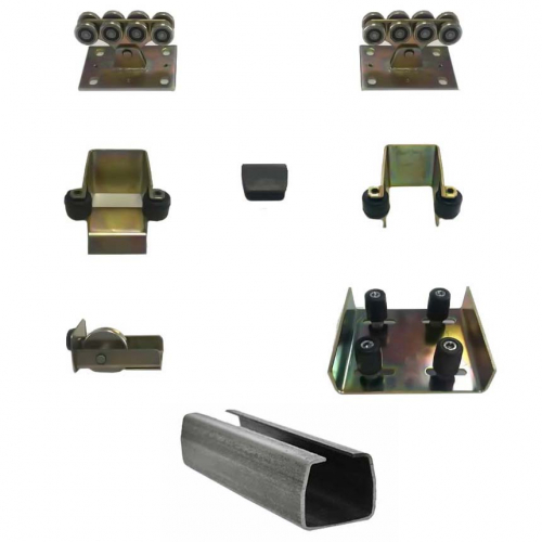 1. Две роликовые тележки с 301-ым подшипником(многие еще называют усиленным в связи с тем, что большинство производителей в каретках до 500 кг используют 201-ый подшипник, который имеет на 30% меньшую статическую и динамическую прочность). Опора имеет самую большую площадку для монтажа среди комплектов до 500 кг, гальванизирована "под латунь".