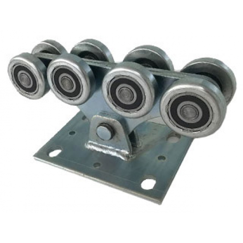 Роликовая опора НХТ для автоматических ворот. Качество роликовых кареток высокое. Применяемые подшипники – 6303 (в аналогичных изделиях конкурентов стоят более слабые 6203). Подшипники соответствуют ГОСТу, крутятся легко. Люфты на подшипниках отсутствуют, что говорит об их хорошем качестве. Люфт на плавающей оси также отсутствует, что гарантирует минимальное клевание ворот.